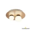 Originale plafoniera LED dal design moderno della serie Corum, realizzata con base rotonda in metallo e alluminio color oro con diffusore in silicone opalino bianco, illuminato indirettamente e due paralumi sferici in vetro soffiato bianco opalino. Lampada elegante adatta per l’illuminazione interna del soggiorno, della sala da pranzo, della camera da letto, del corridoio, dell’hotel e del ristorante.