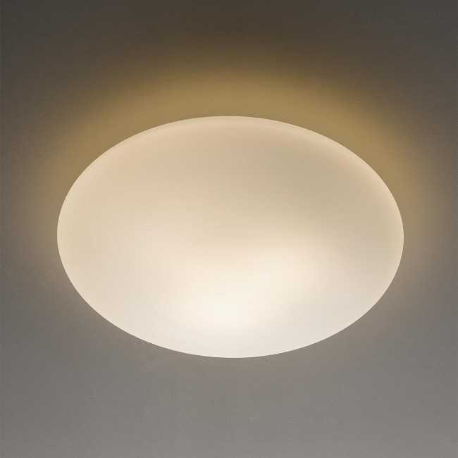 Plafoniera Redo modello “Nuvolo” 3xE27 con struttura in metallo e paralume bianco opale realizzato in vetro soffiato.
