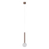 Corpo in metallo e alluminio verniciato caffè opaco, diffusore in vetro soffiato trasparente. Emissione luminosa diretta e indiretta. Temperatura di colore 2700–3000K. Grado di protezione IP20.