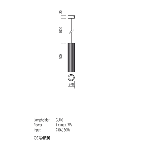 - Dimensioni: diametro: 70 mm, altezza: 300 mm-1330 mm