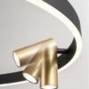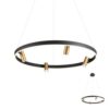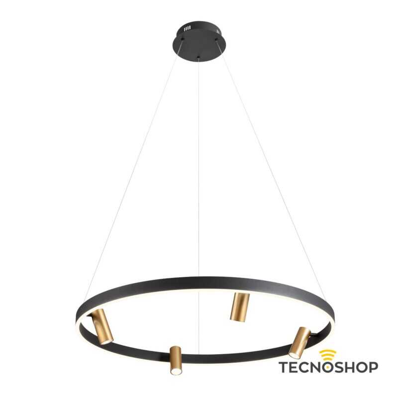 Originale lampada a sospensione a LED dal design moderno della serie Summit, realizzata con base tonda in metallo colore nero con anello in alluminio e diffusore in silicone opalino con quattro teste cilindriche orientabili in colore ottone. Proposta elegante per l’illuminazione interna del soggiorno, della sala da pranzo, della camera da letto, dell’hotel e del ristorante.
