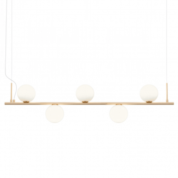 REDO SOSPENSIONE “TALIS” 5XE14 IN METALLO BRONZATO E VETRO SOFFIATO BIANCO