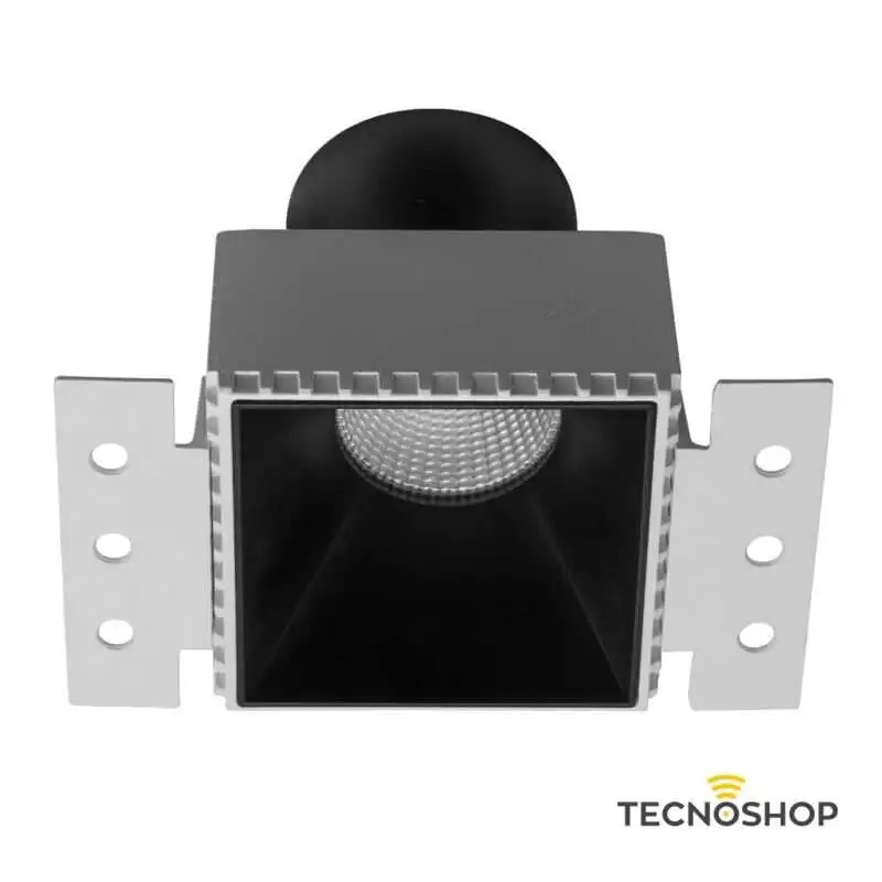 Faretto da incasso XPOLI quadrato, telaio e anello decorativo bianco opaco, per lampadine a LED, con attacco GU10 o per moduli a LED XCOMBO CM06, CM07, CM08, CM10 e CM11. Si installa su controsoffitti in cartongesso, a filo, senza rivestimento del bordo del profilo.