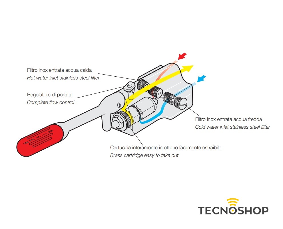 - Cartuccia completamente estraibile senza togliere il miscelatore dal pavimento