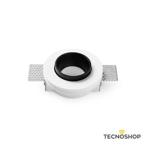 Faretto a incasso per cartongesso con portalampada GU10 ad una luce con cornice metallica e finitura nera spazzolata.
