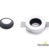 Faretto a incasso per cartongesso con portalampada GU10 ad una luce con ghiera metallica e finitura nera spazzolata.