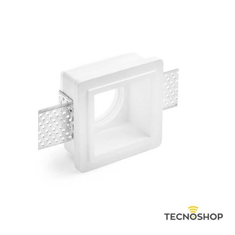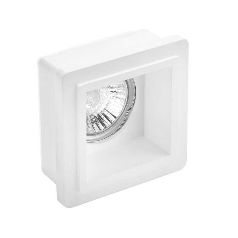 Lampada in gesso da incasso invisibile per cartongessi. Dopo aver rasato a gesso il muro, l’incasso risulta parte integrante del muro stesso e può essere tinteggiato. Apertura per installazione Ø 92×92 mm.
