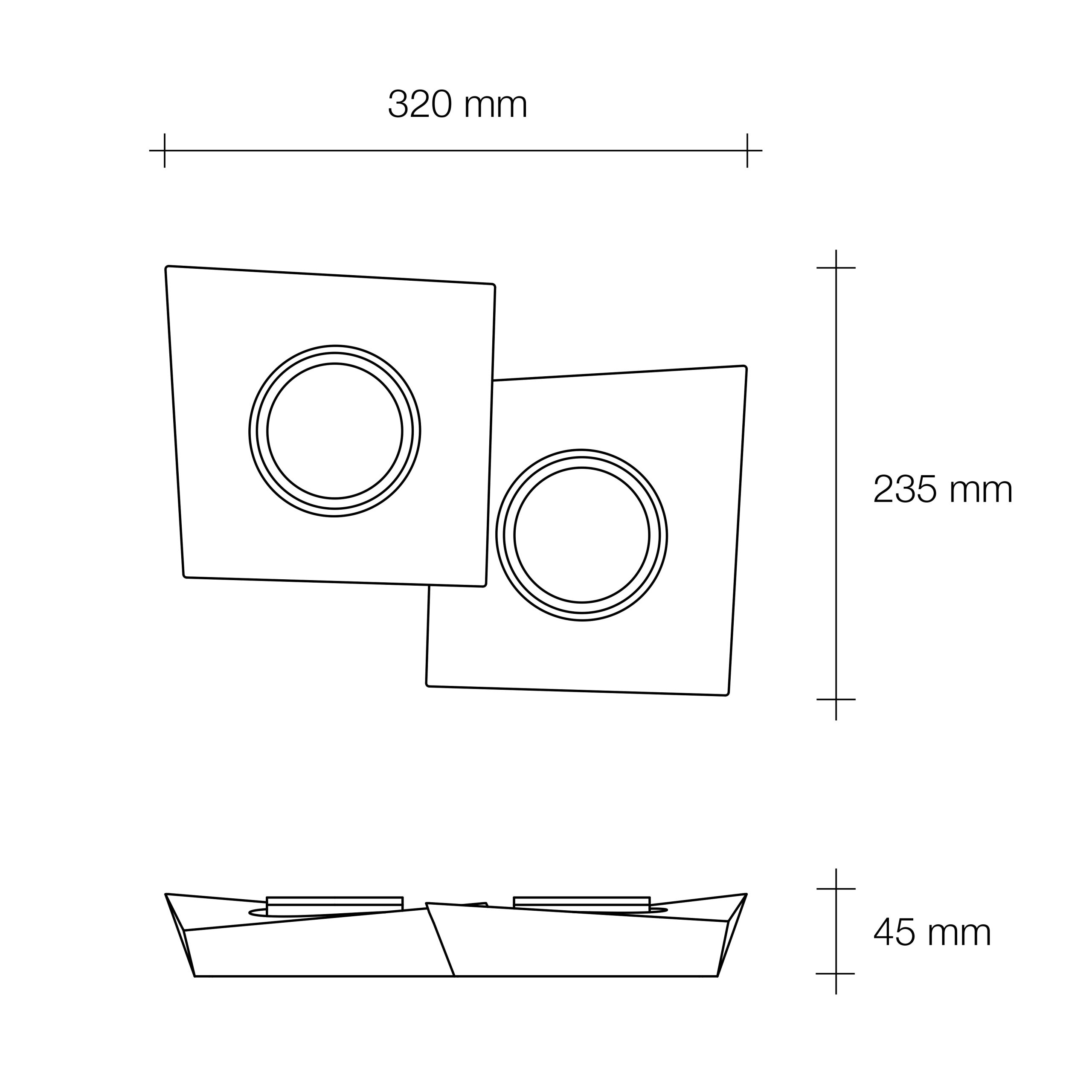 Lampada da soffitto in gesso con geometria irregolare. Dotata di due portalampada GX53.