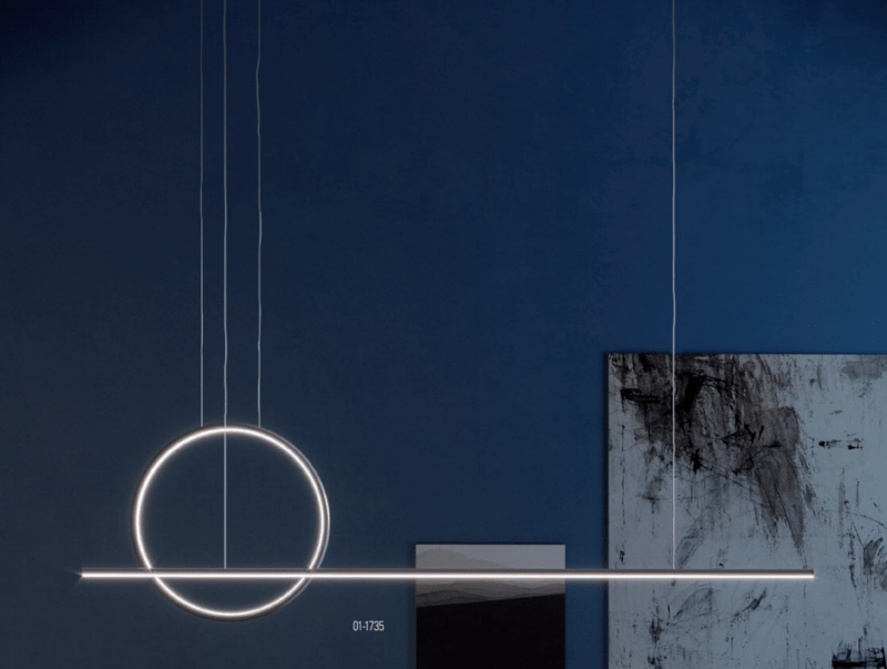 Sospensioni per interni, equipaggiate con SMD LED, struttura in alluminio e metallo verniciata a polveri bianco opaco o nero opaco, diffusore in silicone opalino bianco.
