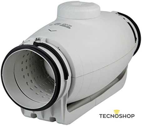 Ventilatori elicocentrifughi da canale dal basso profilo, estremamente silenziosi, certificati dalla Noise Abatement Society (Associazione per la riduzione del rumore), realizzati in materiale plastico, con elementi acustici (struttura interna perforata che direziona le onde sonore e isolamento interno fonoassorbente che abbatte il rumore irradiato), corpo-motore smontabile senza necessità di smontare i condotti, guarnizioni in gomma in mandata e scarico per assorbire le vibrazioni, scatola morsettiera esterna orientabile a 360°, IP44, motore 230V-50Hz, a 2 velocità, regolabili per variazione di tensione, Classe B, cuscinetti a sfera ad ingrasso permanente, condensatore e protezione terminca.