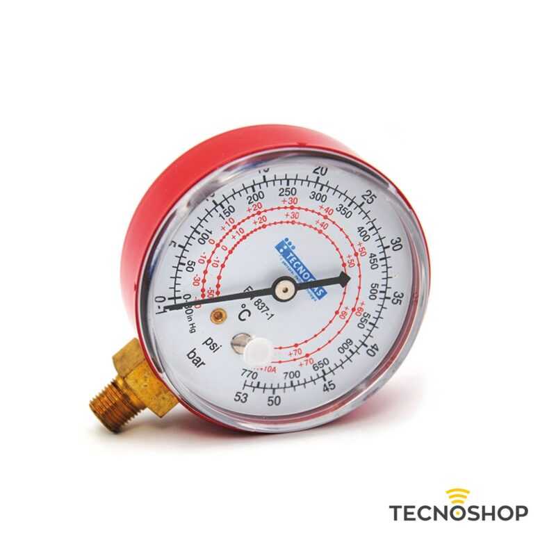 Manometro Tecnogas ad alta pressione per gas R410A e R32 Ø 70mm e attacco radiale 1/8″.