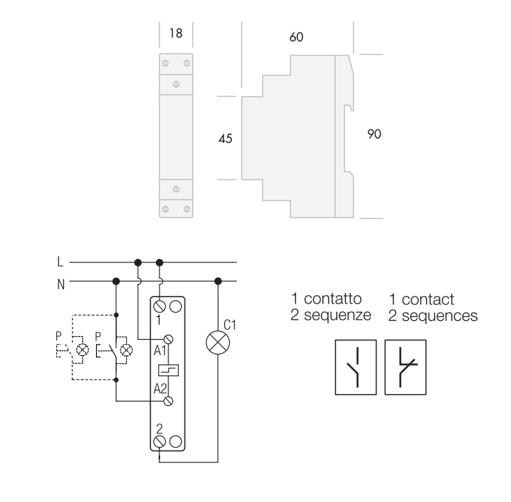 - Carico nominale 16A – 250 Vac