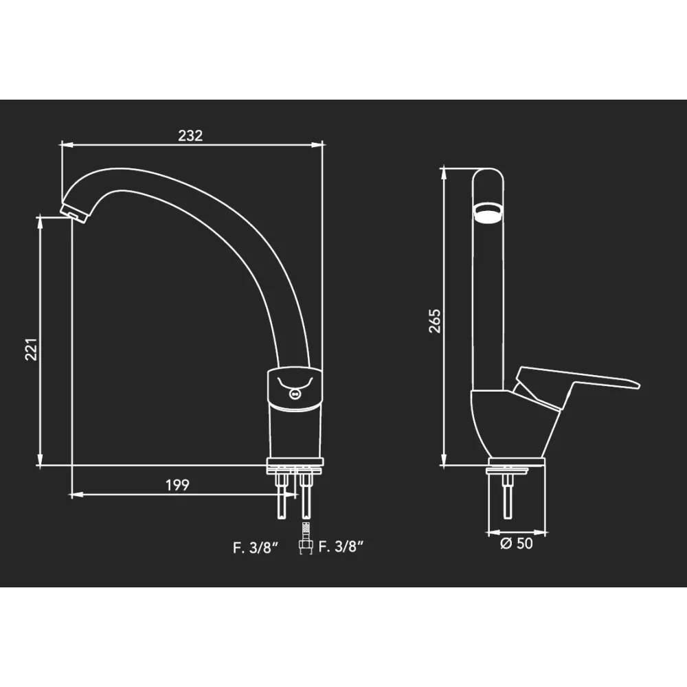 - Completo di 2 flessibili monoforo da 3/8″ + fissaggi