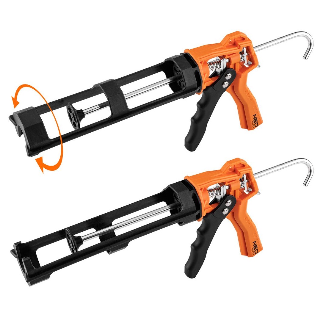 Lo spremitubo per tubi in silicone e masse spesse da 230 mm 61-007 di NEO TOOLS è un pratico spremitubo realizzato in nylon, un materiale altamente resistente, e dotato di un supporto rotante per tubi, che migliora notevolmente il lavoro con questo utensile.