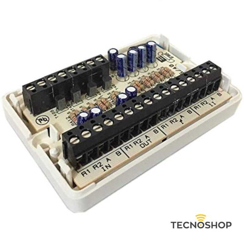 Il dispositivo consente di distribuire il segnale video in impianti 5 fili. Gli utilizzi classici di questo prodotto sono per la distribuzione al piano del segnale video e per la distribuzione su piu’ colonne montanti dello stesso segnale video. Il distributore e’ dotato di 4 uscite indipendenti piu’ una passante.