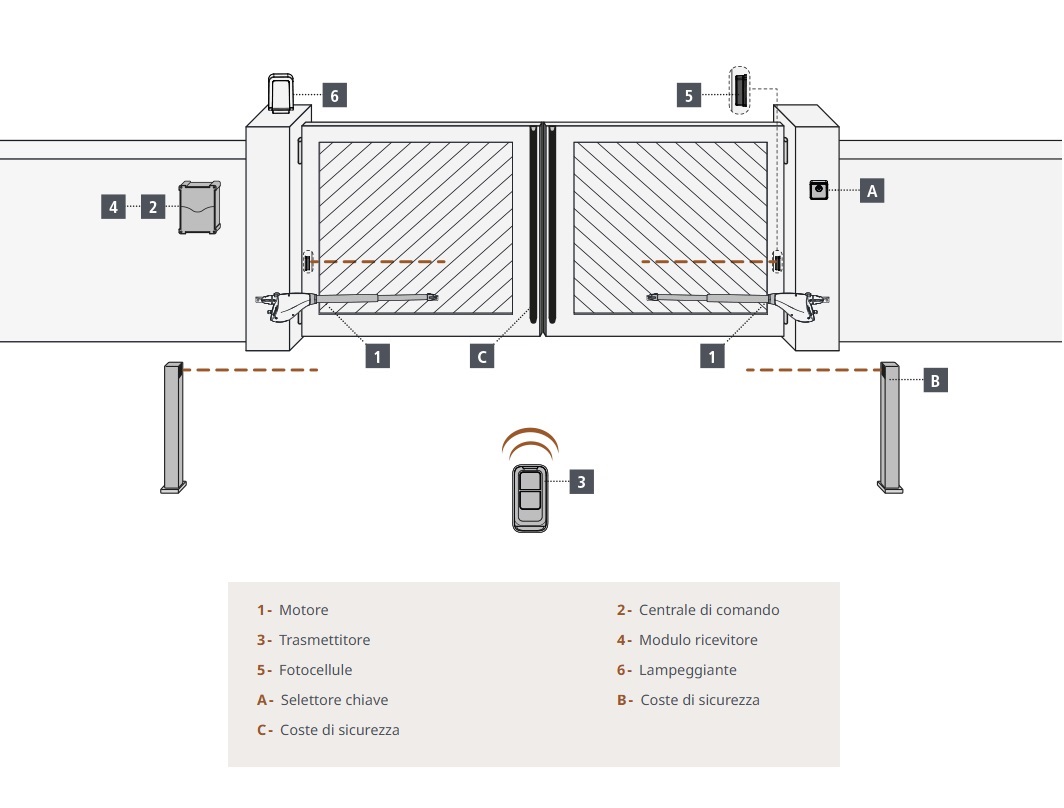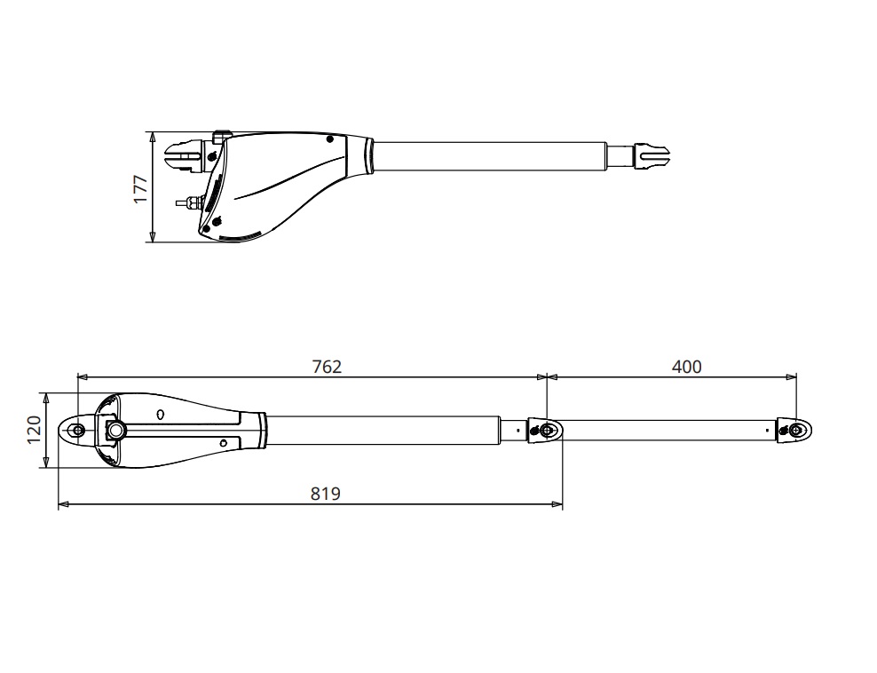 Attuatore elettromeccanico TL SMALL 400 a braccio telescopico 230V per cancelli a battente con ante fino a 2,50 m.