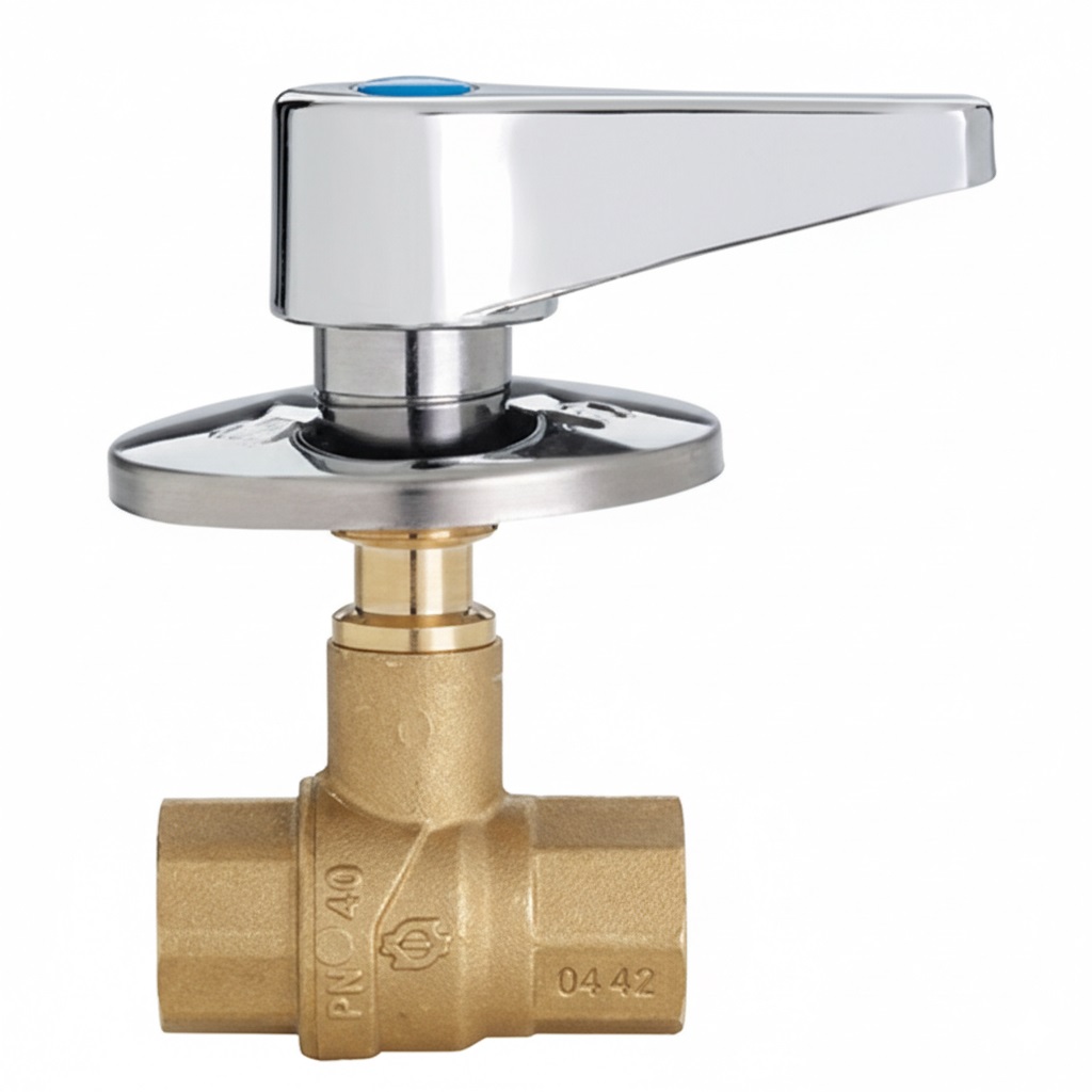 Valvola a sfera compatta per impianti idraulici ad incasso, diametro 1/2″. Dotata di leva ergonomica per apertura e chiusura rapida del flusso dell’acqua e rosone decorativo che permette una finitura estetica pulita a muro. Ideale per rubinetterie, attacchi lavatrice, lavabo o scarichi di servizio, garantisce tenuta ermetica e lunga durata.