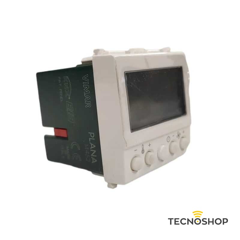 Termostato elettronico standard 14452.SL Plana Silver KNX EIB 1 IN – 2 OUT, relè 2A 24Vac, 2 moduli.