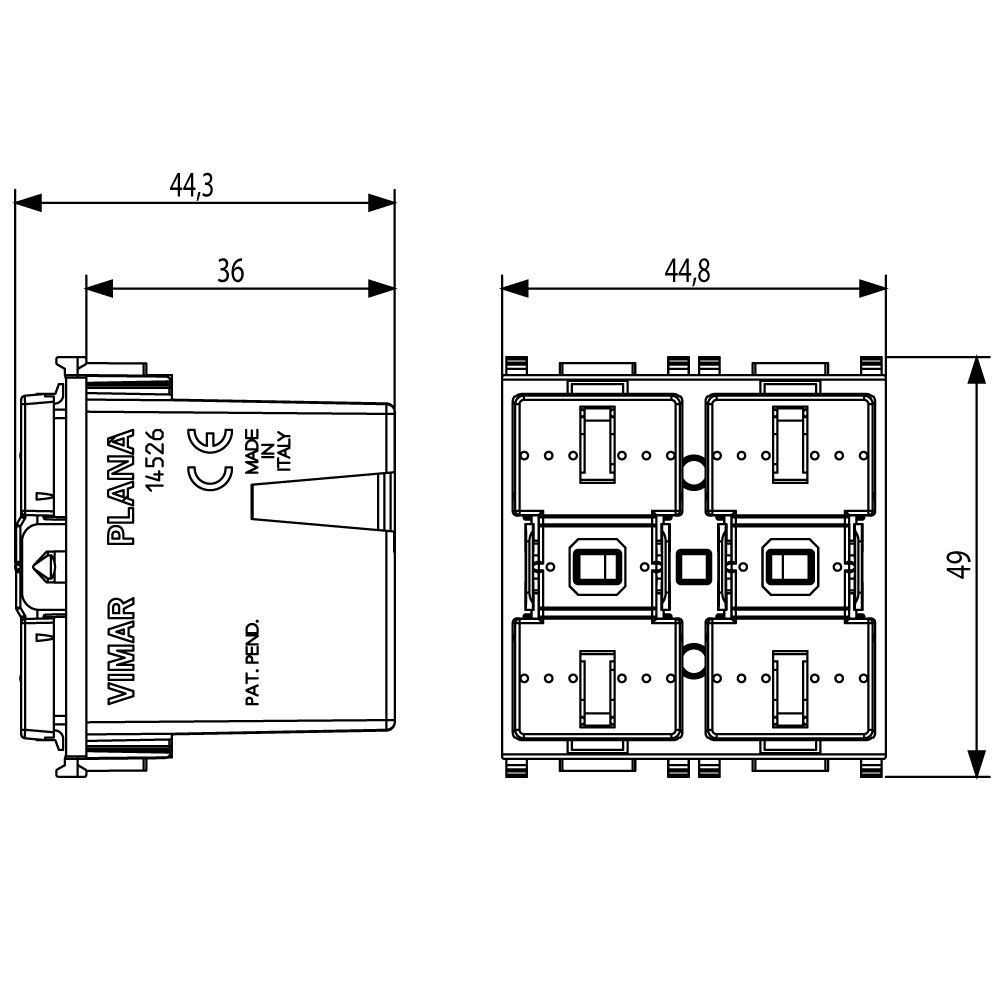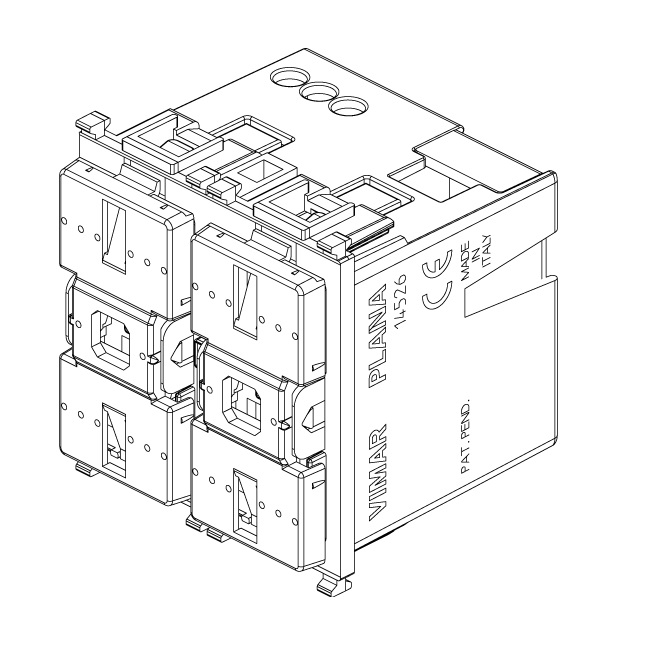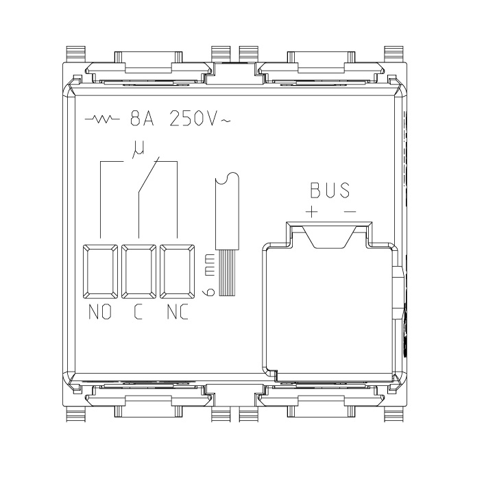 Apparecchio di comando a due pulsanti basculanti ed attuatore con uscita a relè in scambio 8 A 120-230 V~, da completare con tasti intercambiabili 1 o 2 moduli – 2 moduli.