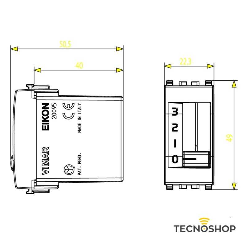Commutatore a slitta 1P 6(2) A 250 V~ a 4 posizioni, per regolazione della velocità di ventil-convettori (fan-coil), bianco.
