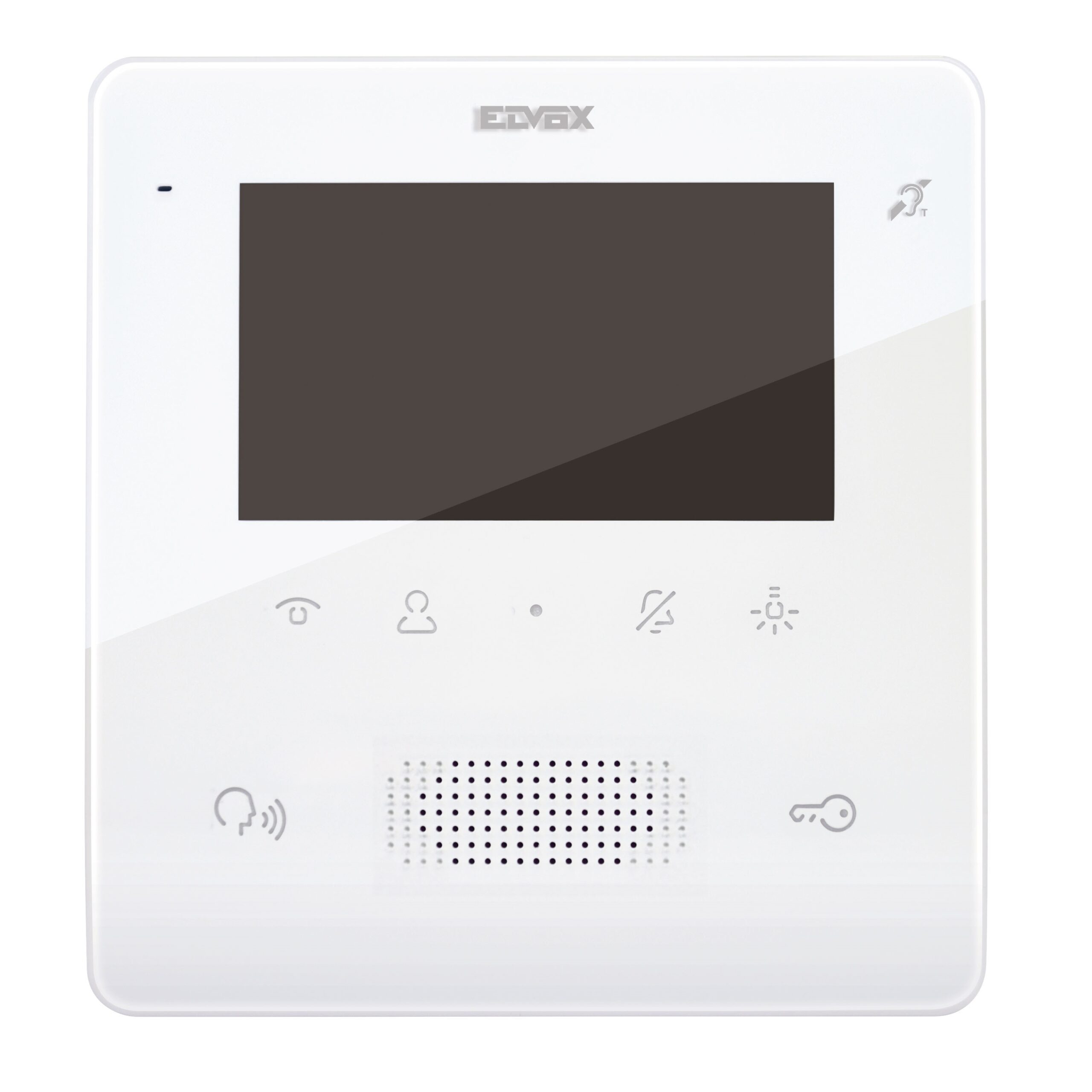 Videocitofono vivavoce Tab Free 7559 da parete per sistema Due Fili Plus, display a colori LCD 4,3in, tastiera capacitiva per funzioni videocitofoniche e chiamate intercomunicanti, teleloop per protesi acustiche, staffa per il fissaggio su scatola rettangolare o rotonda, bianco.